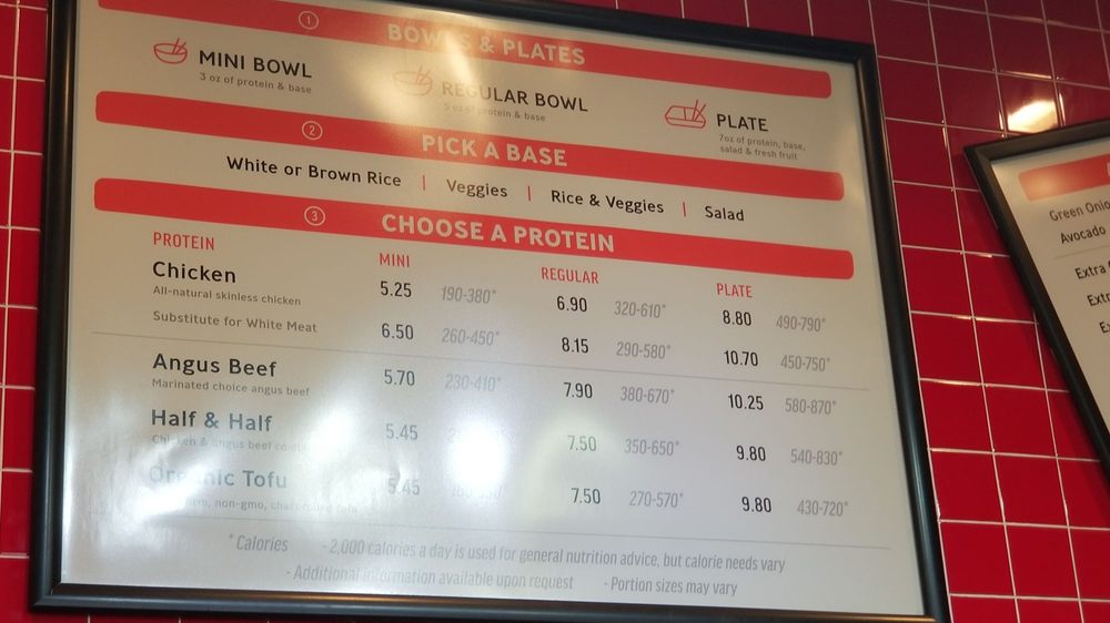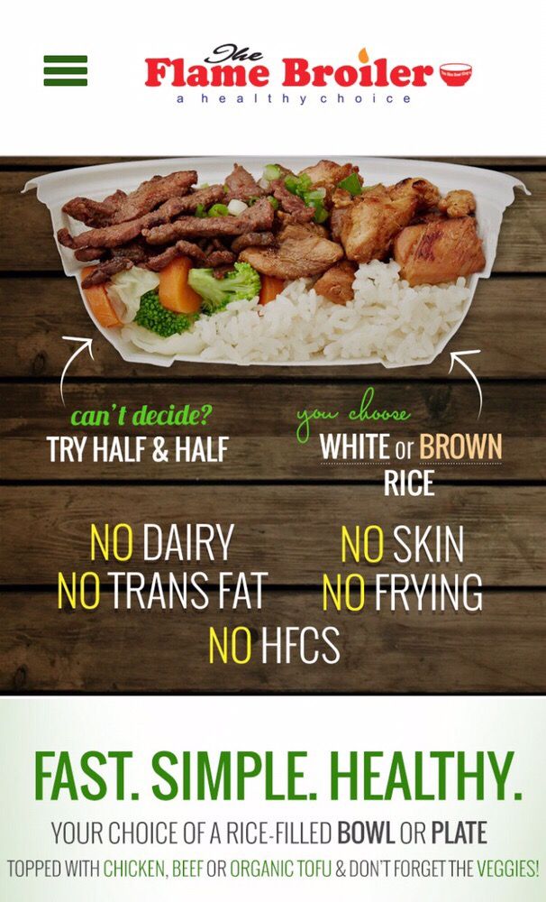 Mix & match your choice of two proteins, all charbroiled on a piping hot 550F grill.Certified Angus Beef, marinaded bulgogi-style.NAE (No Antibiotics Ever) Chicken, brushed with our Simply Magic Sauce.Organic Tofu, brushed with our Simply Magic Sauce.Comes with your choice of white or brown rice, veggies or salad.Includes a side of fruit and cabbage salad.